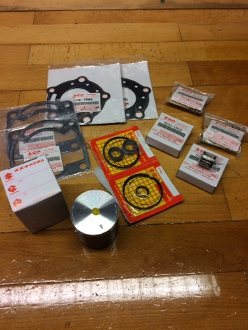 Hårde pakker under juletræet i år! Så mangler der kun tiden til at få det skiftet. Ny stempler og alt det nødvendige for at klare den opgave. Det er altsammen originale suzuki dele. Stemplerne er keramisk overflade coated! Delene er fra Www.thetuningworks.co.uk. En rgv250/rs250 specialist